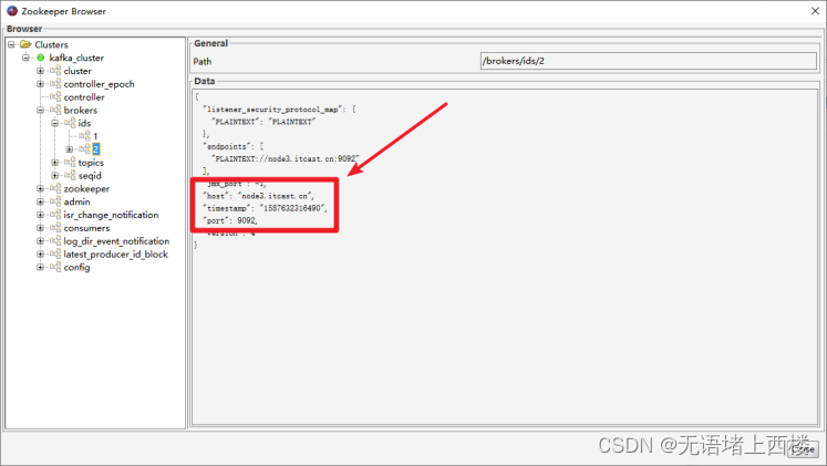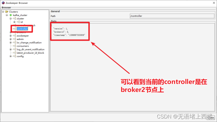 2.点击左侧树形结构的controller节点,就可以查看到哪个broker是controller了。