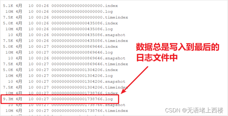 - 新的消息总是写入到最后的一个日志文件中