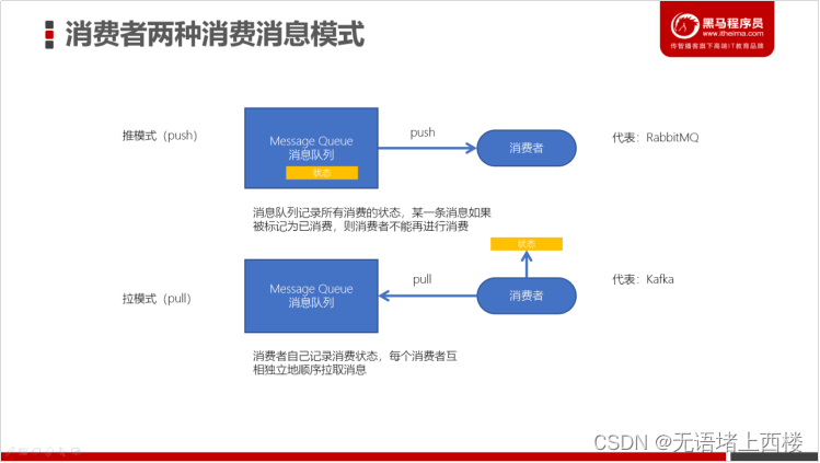 - kafka采用拉取模型,由消费者自己记录消费状态,每个消费者互相独立地顺序拉取每个分区的消息