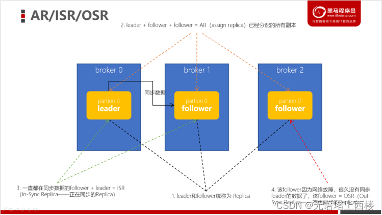 - 由于follower副本同步滞后过多的副本(不包括 leader 副本)组成 「OSR」(Out-of-Sync Replias)