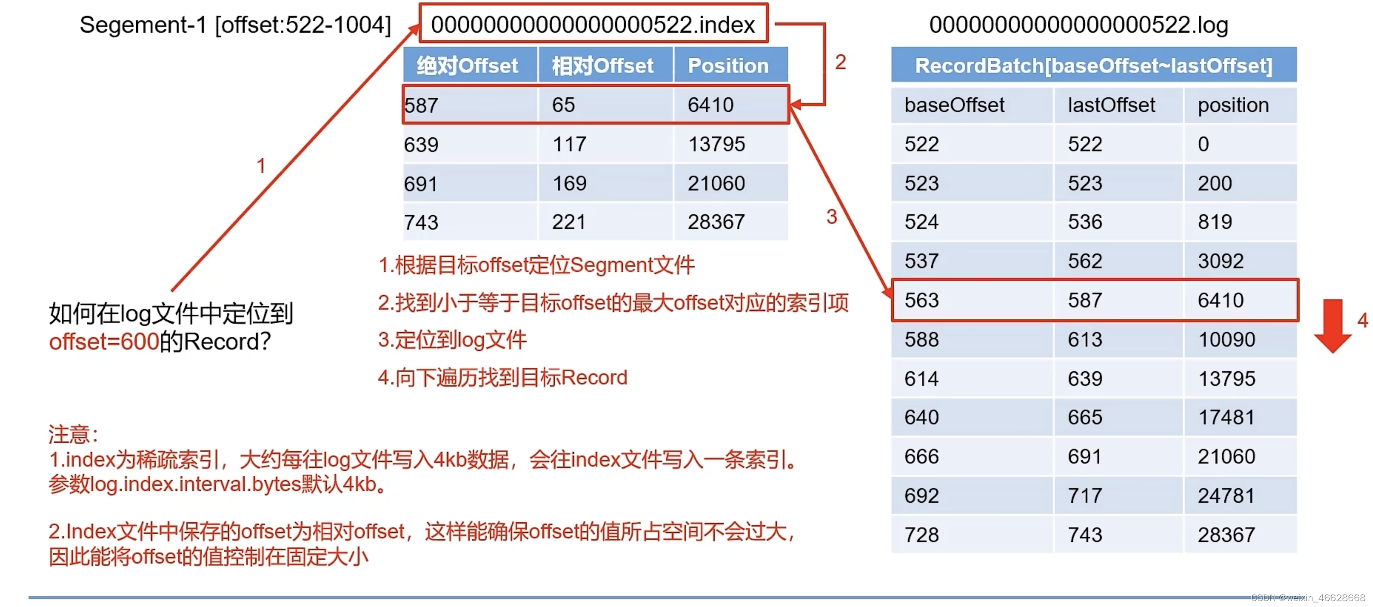 Kafka生产者发送数据到broker,数据在底层以Log方式(逻辑概念)存储,实际上是Segment(物理概念),一般1个Segment是1G,包含.log文件和.index文件,.index文件是索引,用于快速查询数据