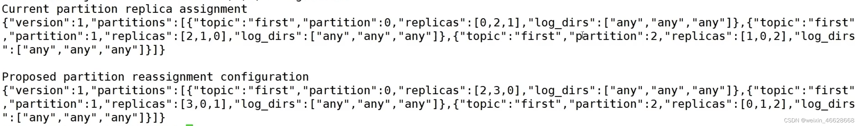 bin/kafka-reassign-repartitions.sh --bootstrap-server hadoop102:9092 --topics-to-move-json-file topics-to-move.json --broker-list "0,1,2,3" --generate
