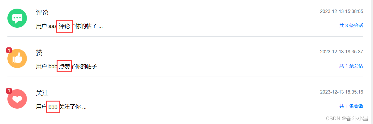 - 触发事件:评论后,发布通知;点赞后,发布通知;关注后,发布通知