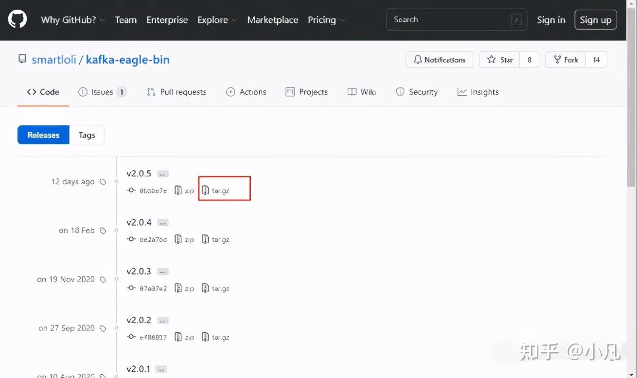 - 下载kafka-eagle的安装包,下载地址:https://github.com/smartloli/kafka-eagle-bin/releases