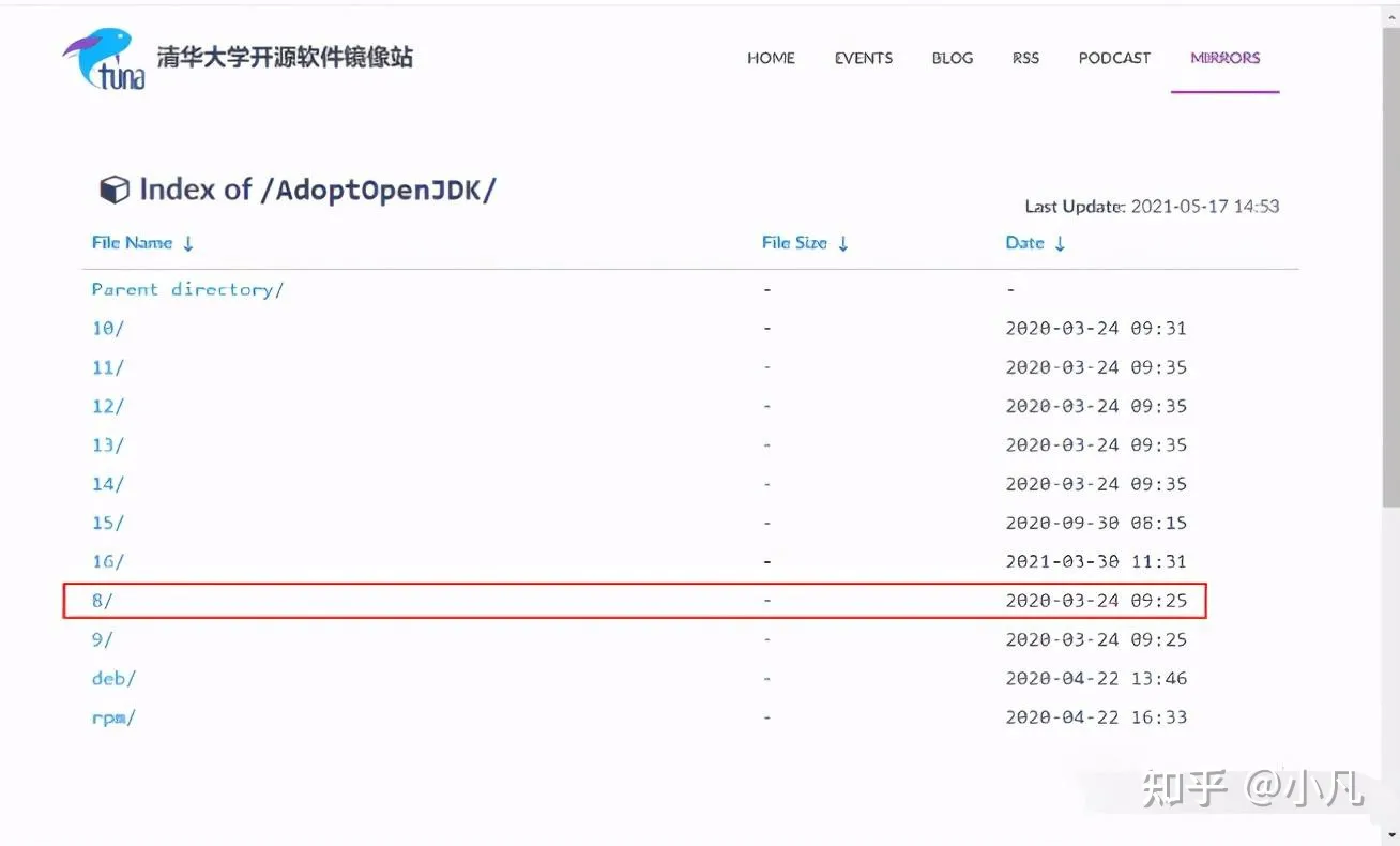 - 下载JDK 8,下载地址:https://mirrors.tuna.tsinghua.edu.cn/AdoptOpenJDK/