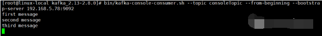 bin/kafka-console-consumer.sh --topic consoleTopic --from-beginning --bootstrap-server 192.168.5.78:9092