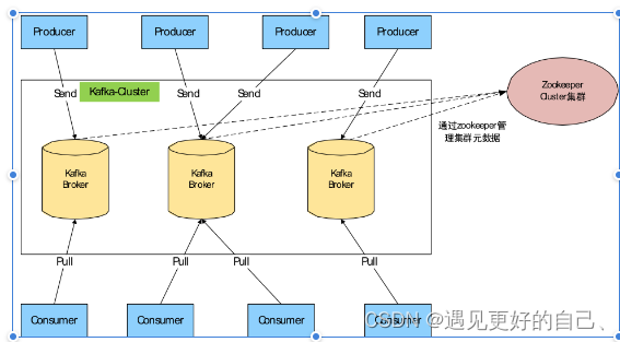 - 客户端状态维护:消息被处理的状态是在 Consumer 端维护,而不是由 server 端维护。当失败时能自动平衡。