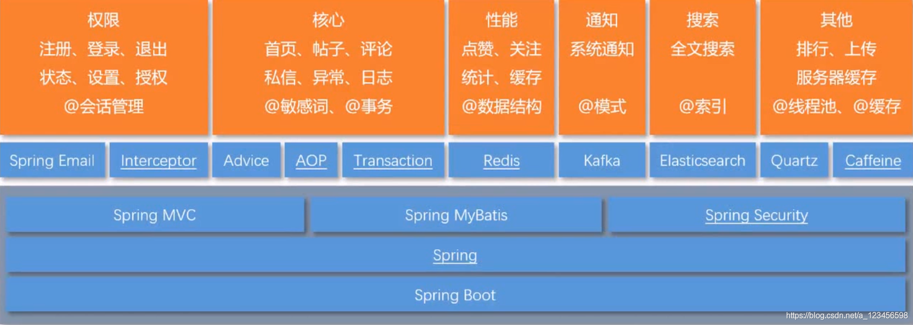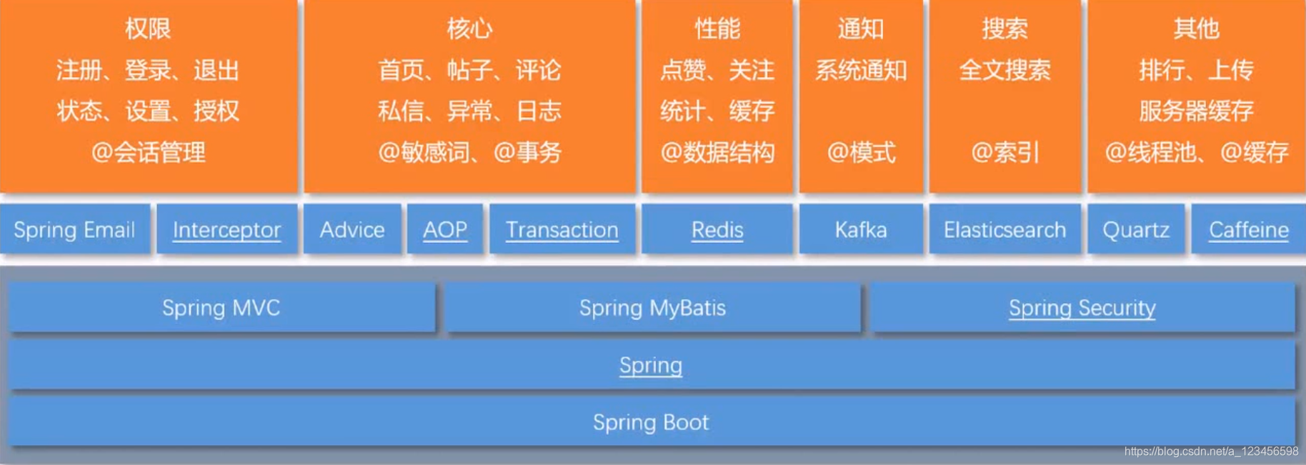 项目五:基于Spring Boot的社区论坛开发【第一章:初识Spring Boot,开发社区首页】Spring Boot只是Spring本身的扩展,使开发,测试和部署更加方便。1.介绍SSM[Spring(一套JAVA框架)、Spring MVC(处理浏览器请求)、MyBatis(访问数据库)]Spring Boot:进一步简化SpringRedis(缓存型数据库,性能好)、Kafka(消息队列
