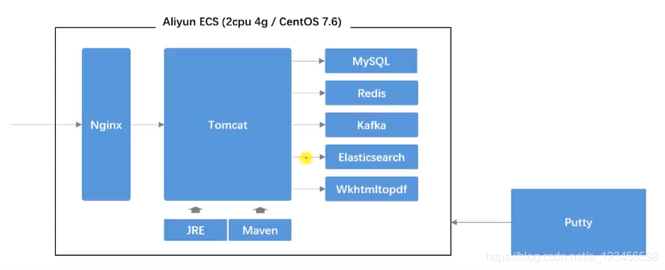 Redis(缓存型数据库,性能好)、Kafka(消息队列)、ElasticSearch(搜索)