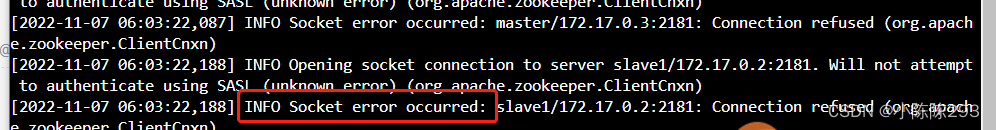 到这一步zookeeper是能正常运行的。若kafka还是超时并出现该信息