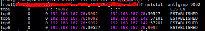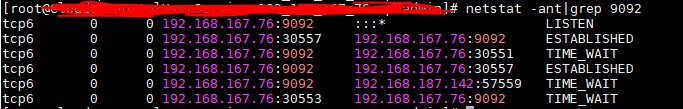 - 检查网络:到机器上执行netstat -ant|grep 9092发现连接是正常的,本机telnet kafka_ip 9092也是通的,所以排除防火墙问题。