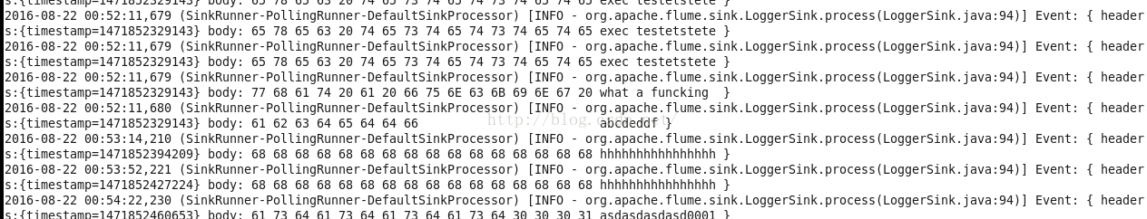 追加 z0 下面的文件 echo "asdasdasdasd000102002102102" >>/usr/local/flume-z0/testlog/test.log