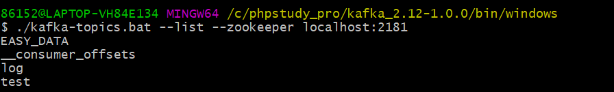 让我们创建一个名为“test”的topic,它有一个分区和一个副本:1> ./kafka-topics.bat--create --zookeeper localhost:2181 --replication-factor 1 --partitions 1 --topic test现在我们可以运行list(列表)命令来查看这个topic:12> ./kafka-topics.bat--