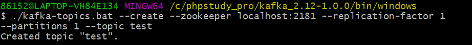 让我们创建一个名为“test”的topic,它有一个分区和一个副本: