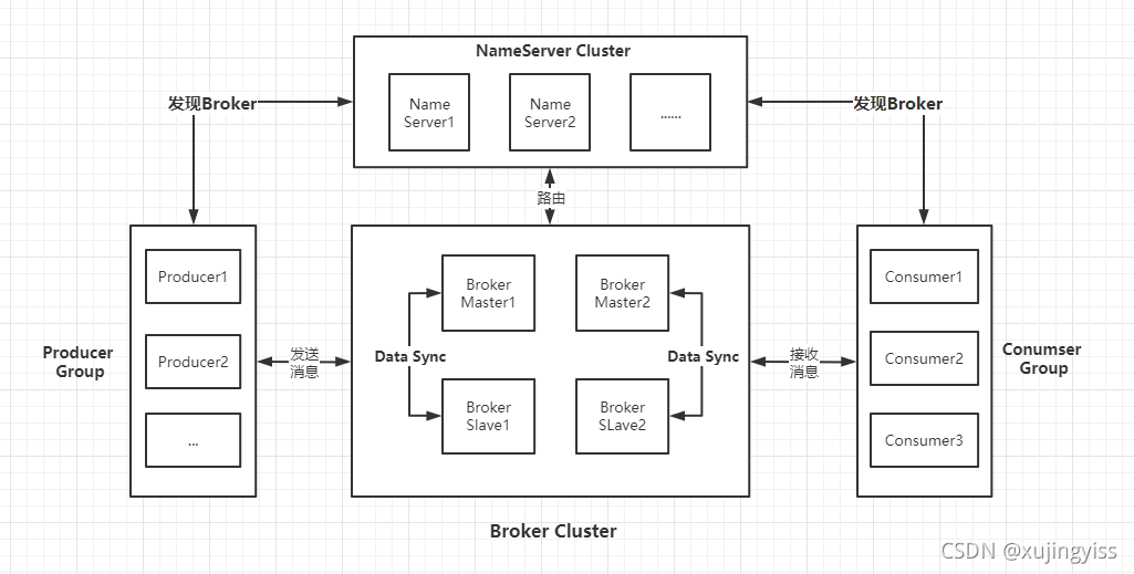 消息的发送者,每30秒从NameServer中获取Broker集群的信息; Producer之间无状态,互相之间不感知; |