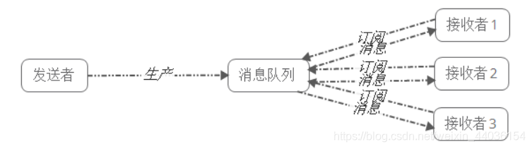消息发送者生产消息发送到queue中,然后消息接收者从queue中取出并且消费消息。消息被消费以后,queue中不再有存储,所以消息接收者不可能消费到已经被消费的消息。