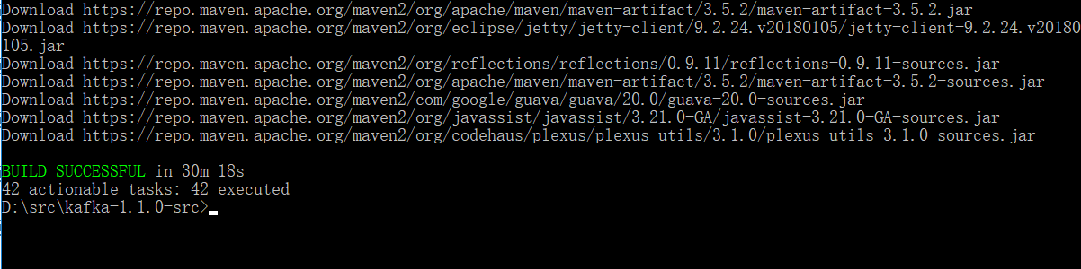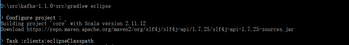 然后在 kafka 源码包根目录下执行gradlew eclipse命令: