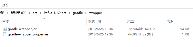命令执行成功后,会在 kafka 源码包的 gradle 目录下生成一个 wrapper 目录,其中包括gradle-wrapper.jar和gradle-wrapper.properties两个文件: